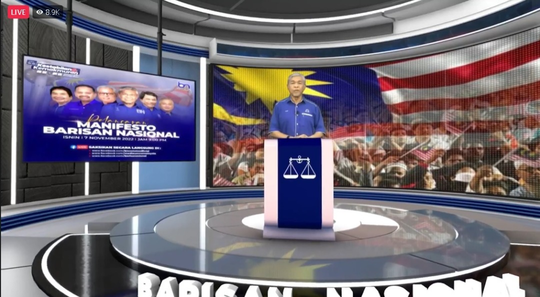 国阵主席阿末扎希今晚推出第15届全国大选的竞选宣言,覆盖了社会家庭、政府政治、沙砂两邦、医疗卫生、教育、青年与长者、粮食、经济与外资、施政与治理、妇女发展、乡村建设、绿色环保以及外交事务的99项承诺。