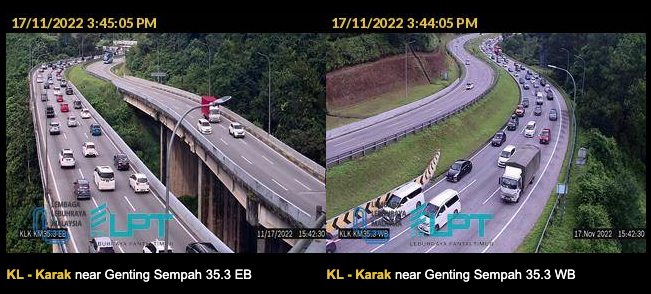 根据大道局(LLM)今日下午发布的推文指出,今日中午12时37分时,加叻大道往东方向,已出现交通缓慢情况,这包括从鹅唛休息站,往云顶森芭朝东(关丹)方向路段,即30.7公里至34.8公里处,出现了长达4.1公里的车龙。