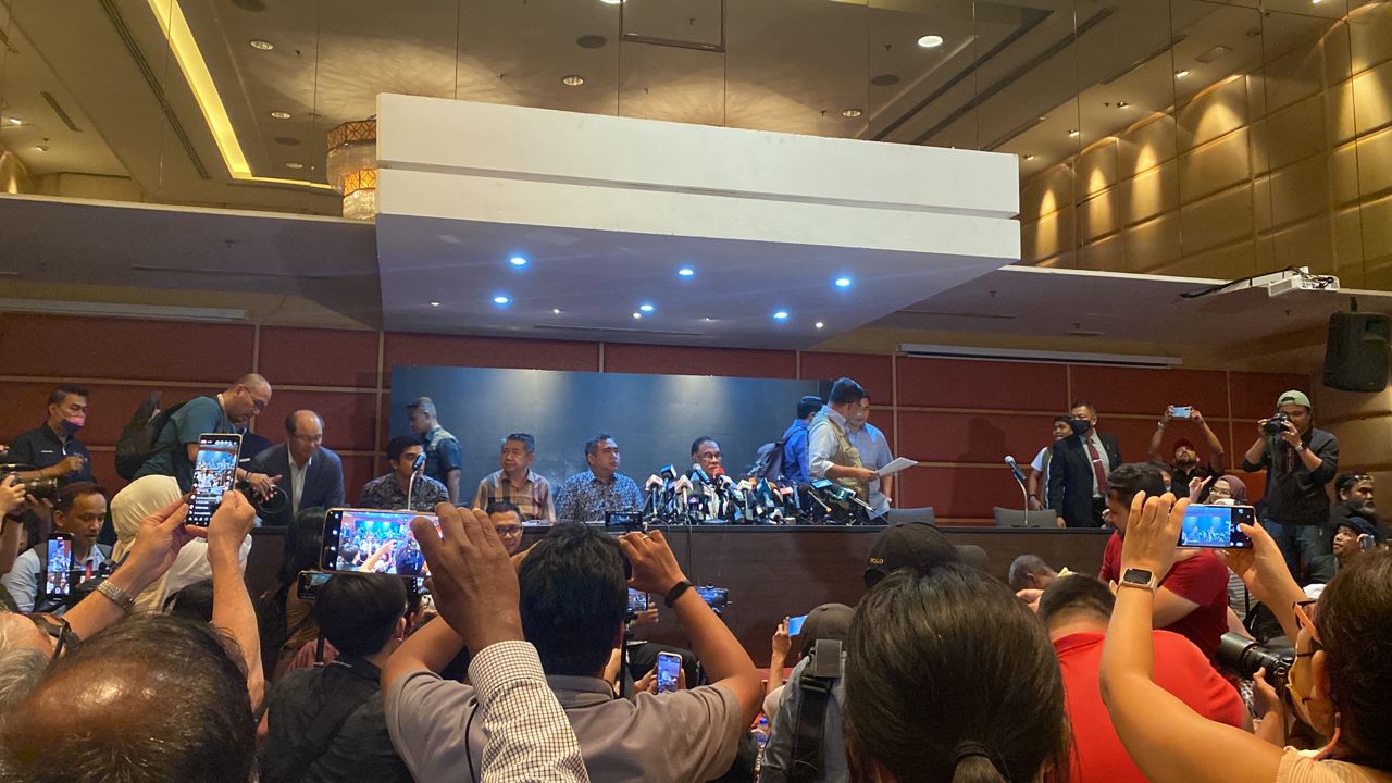 他在泛太平洋酒店召开记者会说,他非常满意有关组成稳定的政府及经济的讨论。