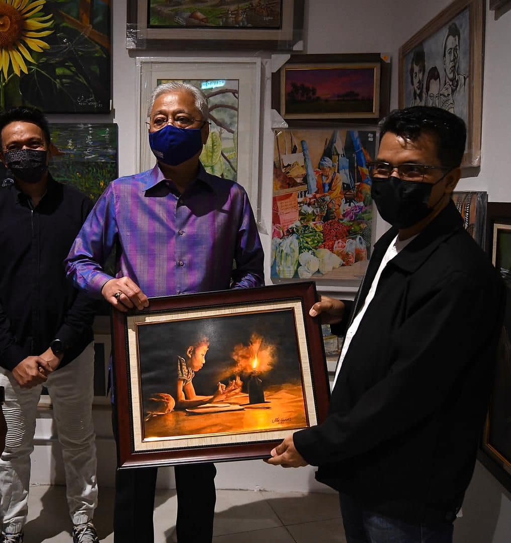 首相依斯迈沙比里在脸书贴文指出,今早出席活动时,参观活动现场的艺术角落,被一幅画吸引目光,最终买下这幅画作。