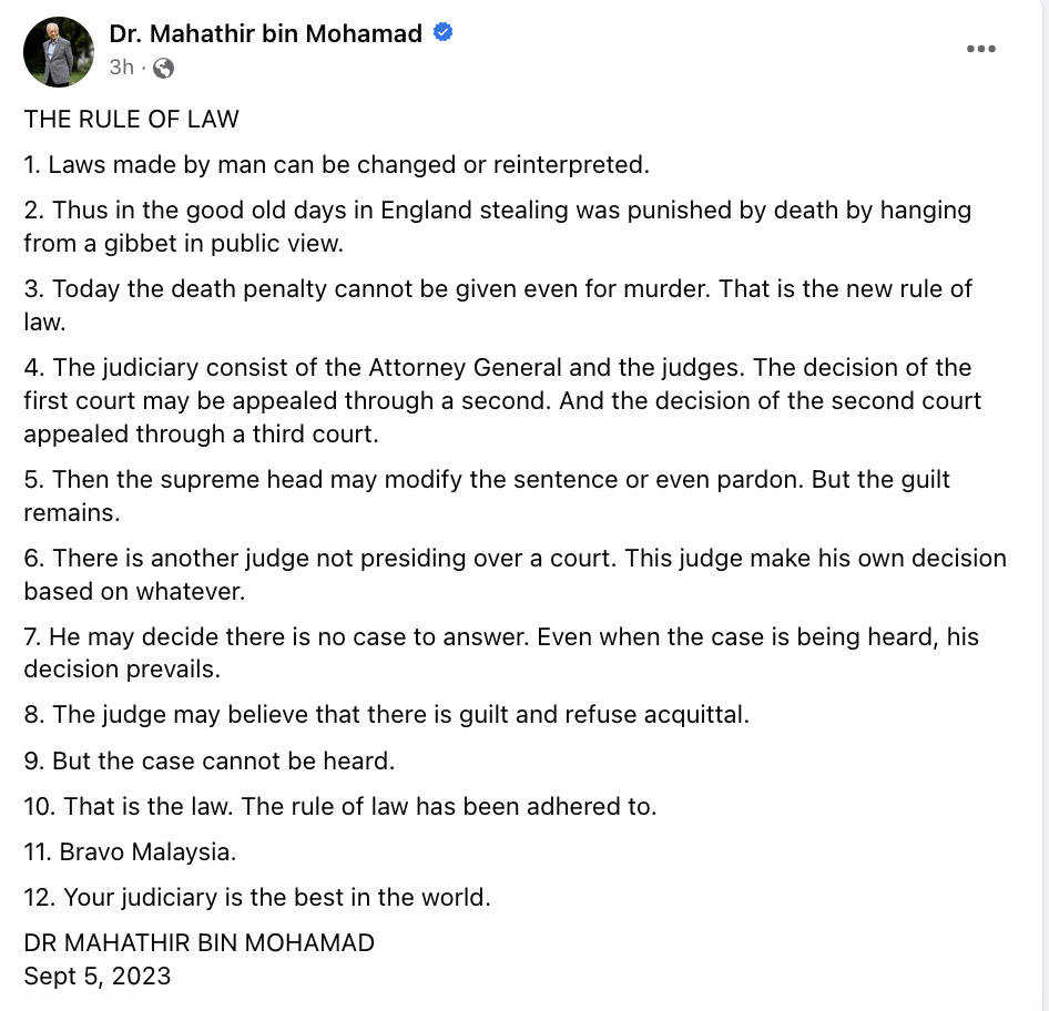 “真棒,马来西亚;你们的司法体系是世上最好的。”