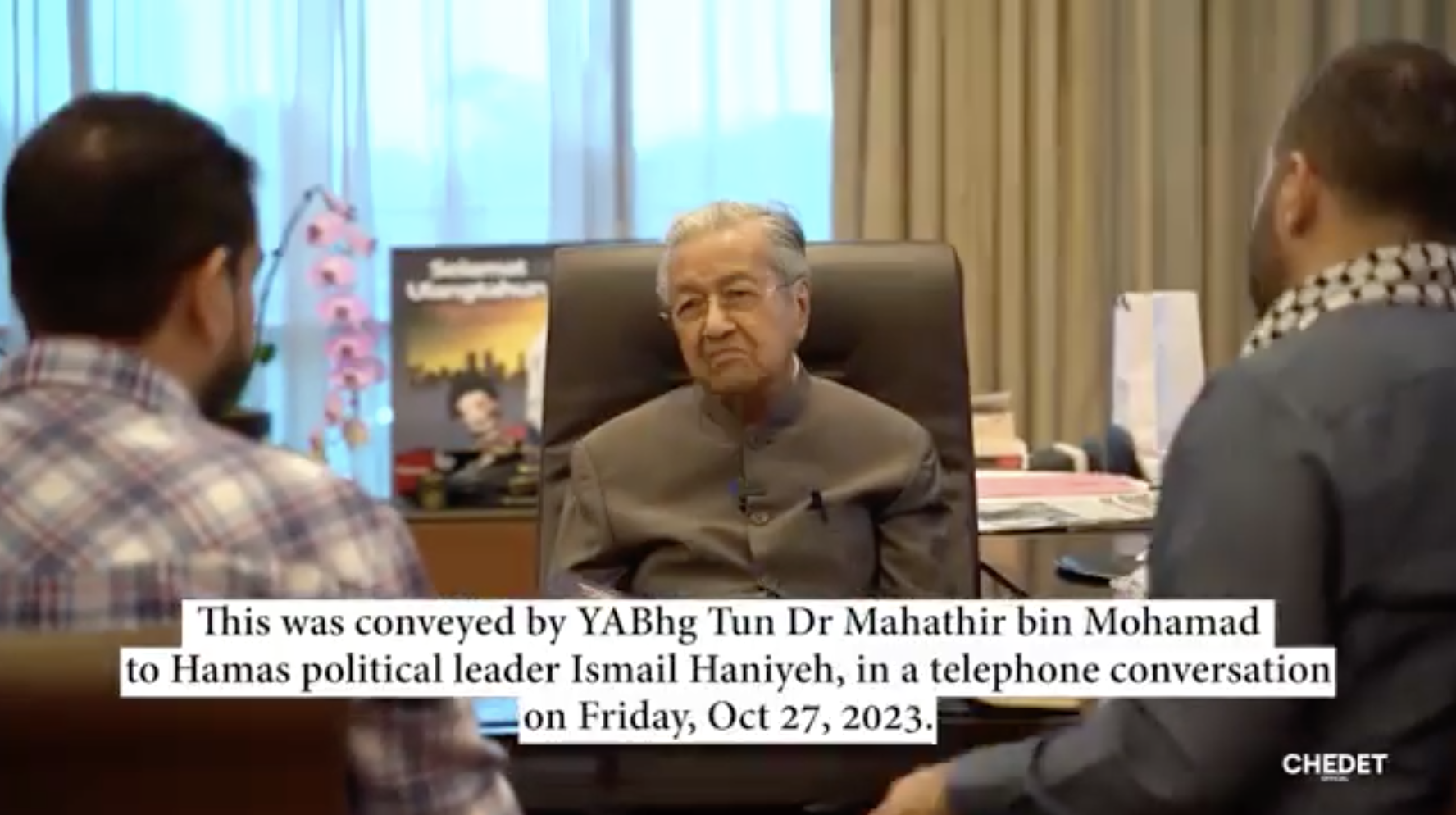 马哈迪与哈马斯政治局局长依斯迈哈尼亚,就以巴冲突事件交流对话视频,遭到脸书删除!