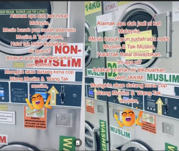《星洲日报》报道,一名TikTok用户前分享一段视频,指他发现一家自助洗衣店出现专供穆斯林和非穆的洗衣机和烘干机,眼前情况让他相当震惊。