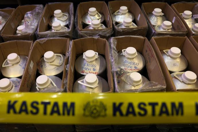 我国关税局首度侦破芬太尼(fentanyl,俗称僵尸药)的国际毒品走私案,起获重达807.9公斤,价值约4440万令吉的液态毒品芬太尼!