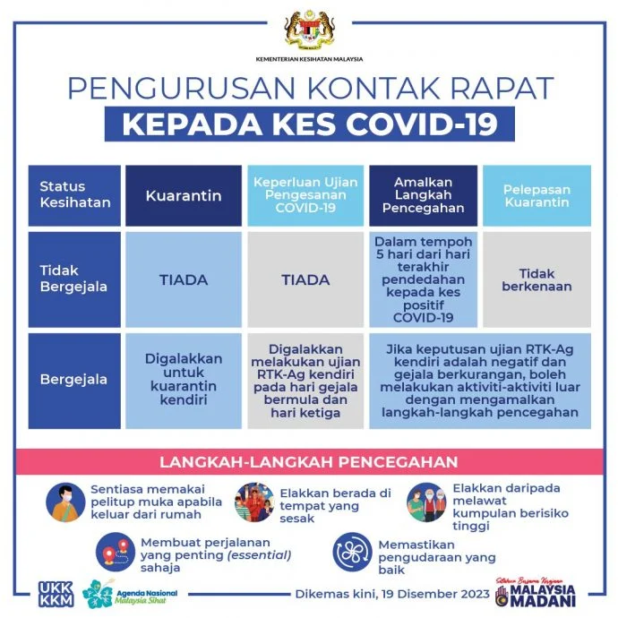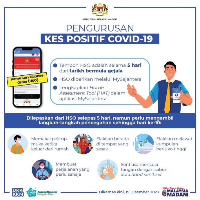 卫生部在社媒X上发帖表示,确诊者将收到MySejahtera的居家隔离令,并随后按程序完成每日的冠病居家评估。