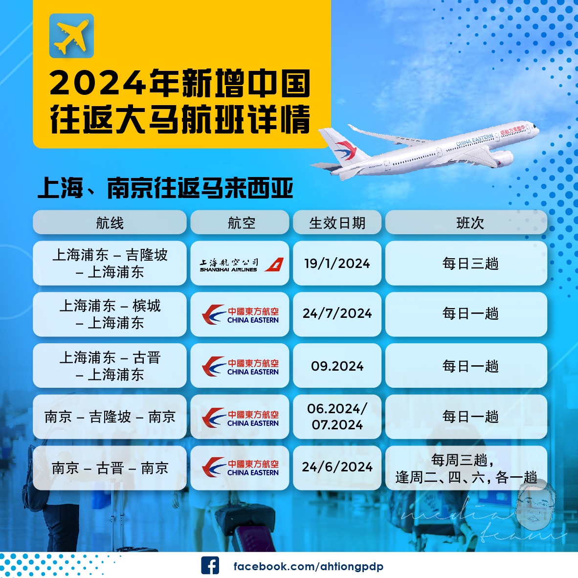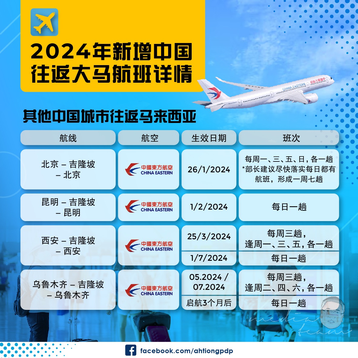 旅游、艺术及文化部长张庆信为旅游业捎来好消息,宣布中国东方航空连同上海航空,确定年内往返马中航班增至每周至少62班次。