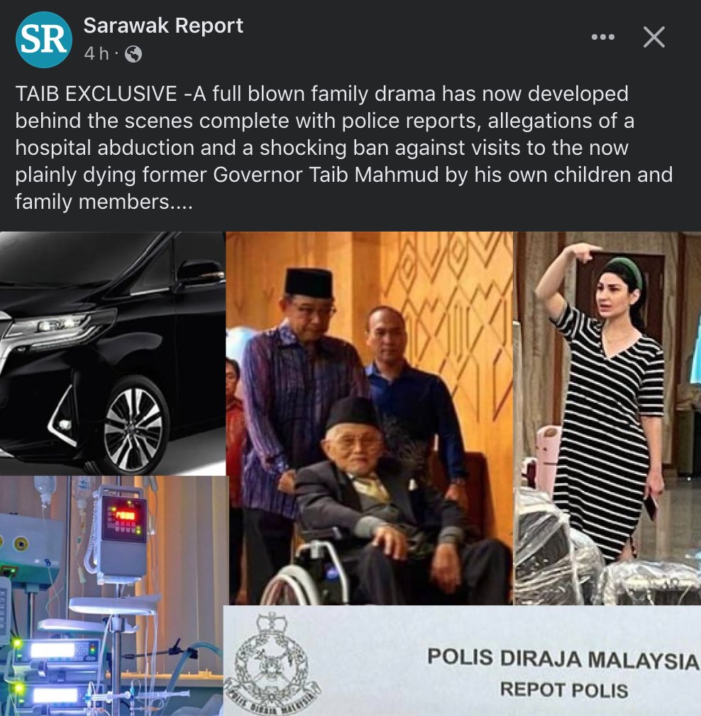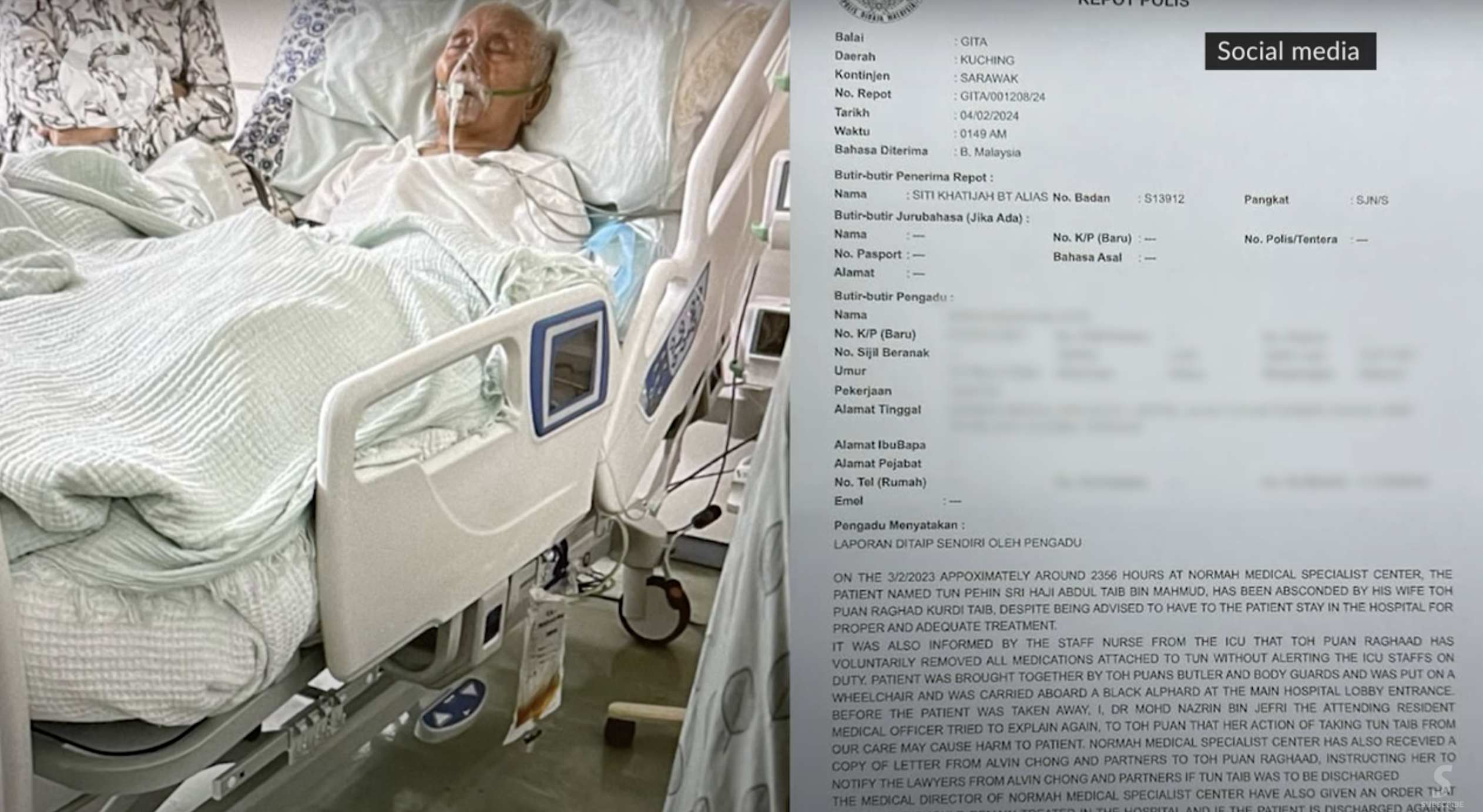 社交媒体今天广传一张警方报案纸,指目前患病的砂州前州元首敦泰益马目,一年前被外籍妻子杜潘拉嘉古迪、管家与保镖等强制带出院,主治医生在相隔一年后昨日报警。
