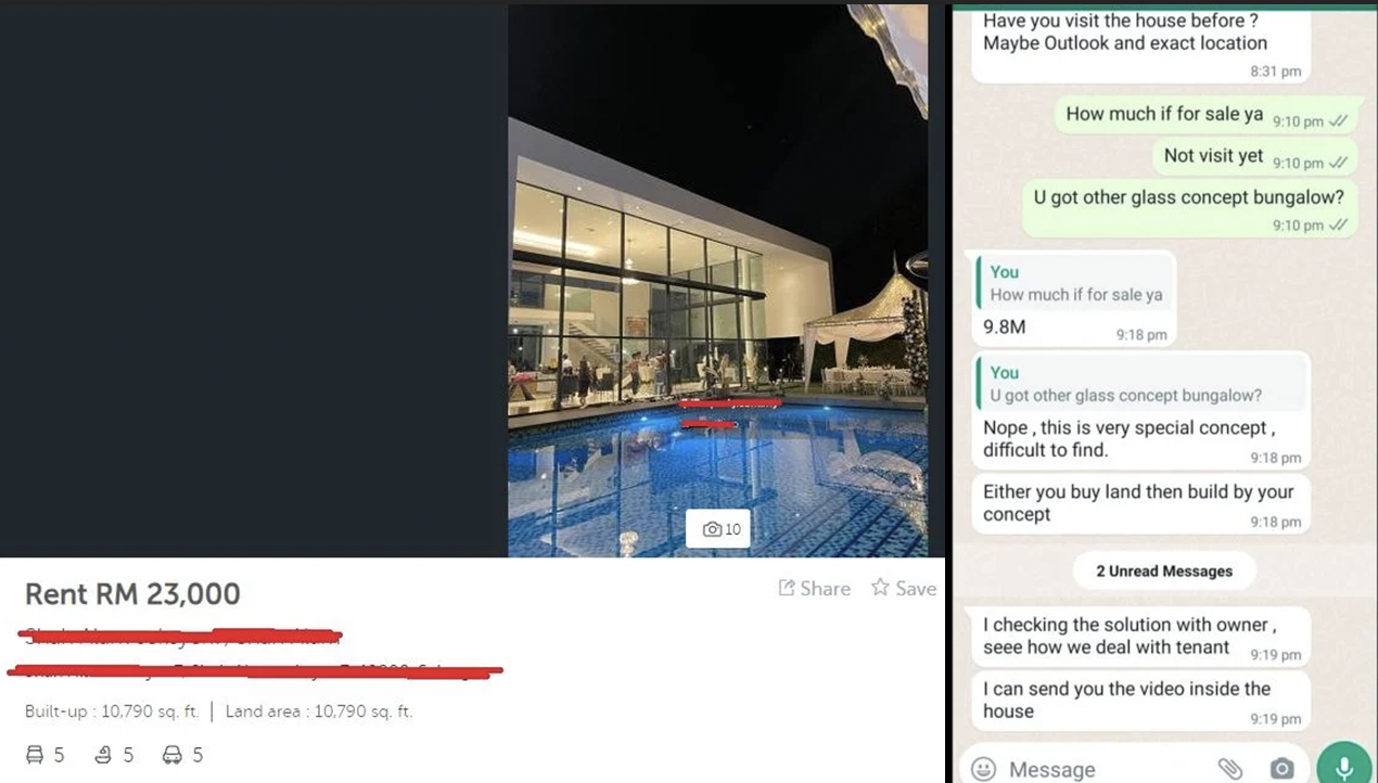 从事房产经纪工作的伊萨,在脸书上揭露本地一位百万网红,宣称自己买了一栋970万令吉豪宅而在社媒引起轰动及关注,但事实上,他在欺骗网民,房子并不是他所有。