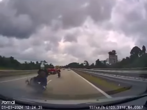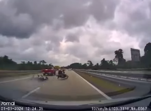 根据社交媒体传播的轿车行车记录器画面显示,这起事故发生在今天中午12时24分,地点位于第二东海岸大道(LPT2)靠近登嘉楼甘马挽的路段。