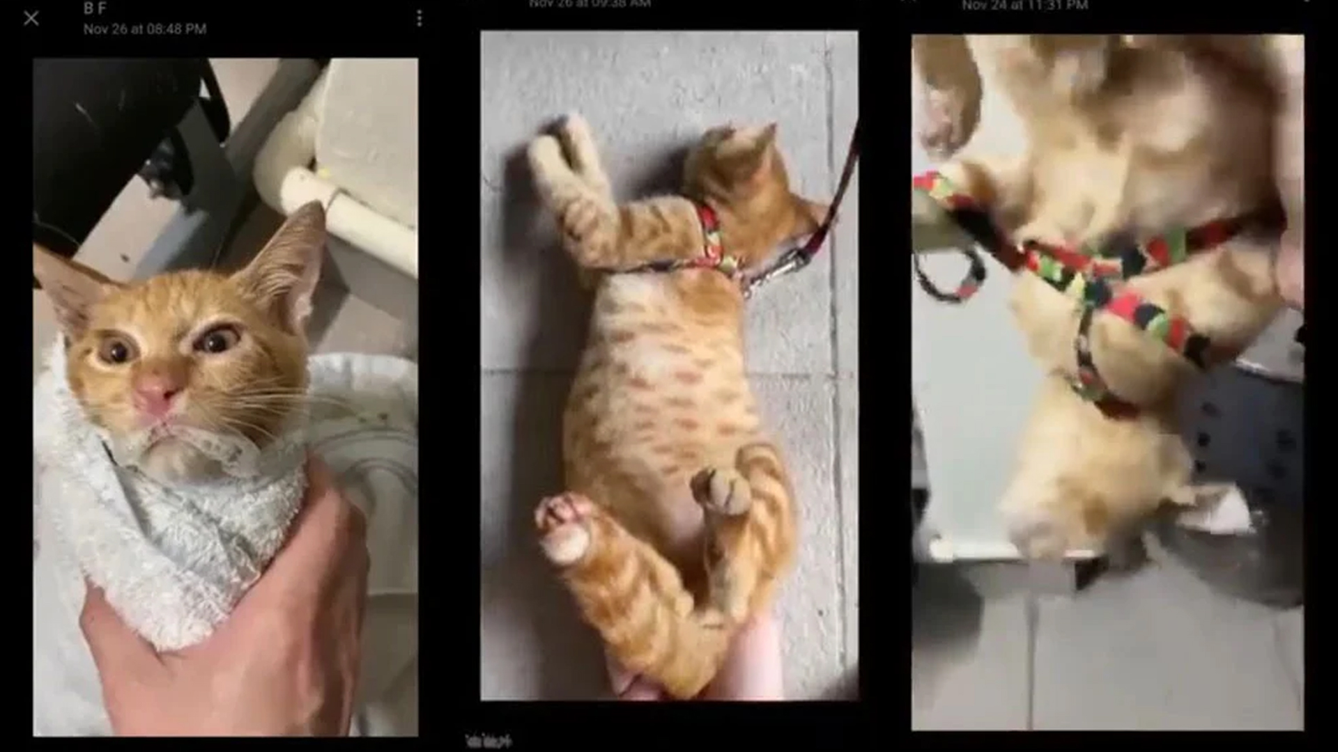 根据网络视频显示,这名男子残忍对待两只猫,其中一只是橘猫,另一只是奶牛猫,虐待持续数月。