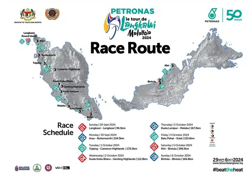 配合如火如荼举行中的“2024年环浮罗交怡脚车赛”(Le Tour De Langkawi 2024),雪州多区涉及道路将依赛程在明后2天(2及3日)分阶段封路,民众请多留意!