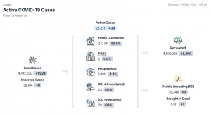 卫生部COVIDNOW网站通报,截至24日11.59pm,我国新增 #1924例,累计病例至今 #4,830,214宗。