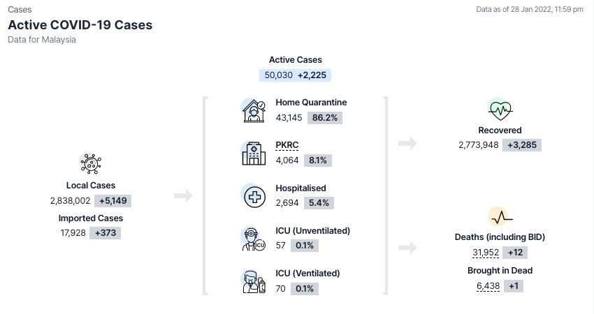 卫生部COVIDNOW网站深夜11时59分通报,1月28日新增死亡病例(包括积压病例)报12死,累计达31,952宗。