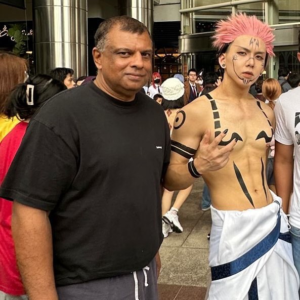 昨天,东尼在社交媒体上传与一名裸上身的角色扮演者的合影,写道:两面宿傩(《咒术回战 》的角色)可以不穿上衣在吉隆坡行走,但我却不能?